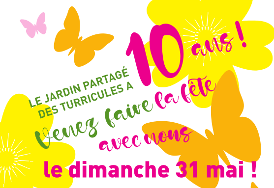 Pour les 10 ans du jardin partagé des Turricules, venez faire la fête avec nous le 31 mai 2026 !